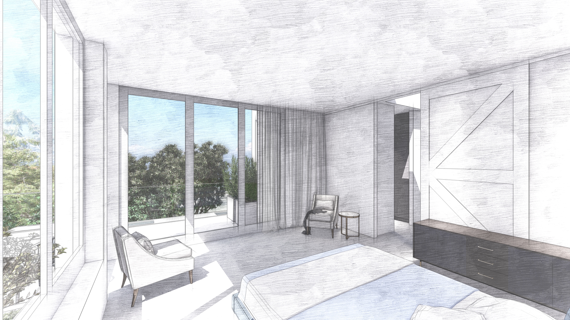 Interior layouts, design and styling to enhance and preserve the existing striking features of this inter-war Functionalist building within the Woolloomooloo Heritage Conservation Area.